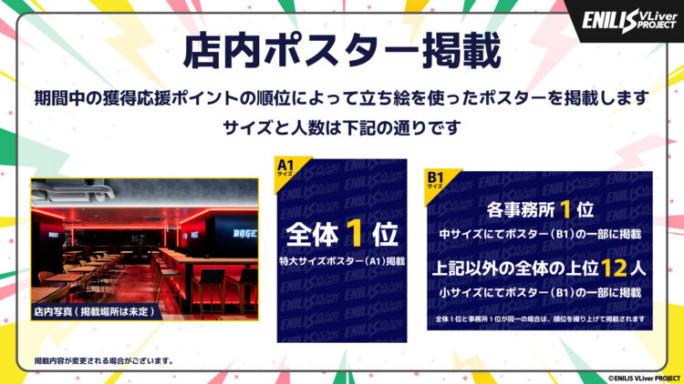 ENILIS VLiver Projectは、所属VLiverが活動の幅を広げ、リアル・バーチャルの垣根を越えて活躍できる機会を創出することを目的に、本イベントを開催いたします。第1弾では、リアル会場でのポスター掲載など、新たなファン層へアピールする機会を提供します。