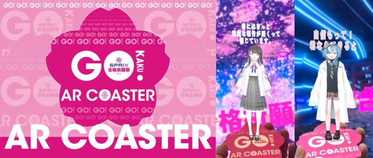 御守りのように持ち帰れる「サクラ祈願 ARコースター」は、AR技術を活用したオリジナルコースターです。スマートフォンのカメラをかざすとキャラクターが現れ、応援メッセージを語りかけます。自宅の勉強環境で頑張る受験生においても、キャラクターからの応援が受け取れる体験をお届けしました。