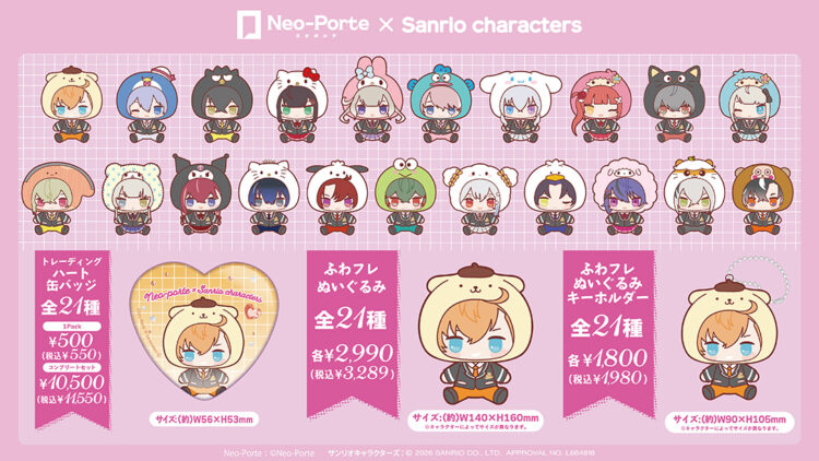 Neo-Porteの0期生〜6期生とSanrio charactersによるコラボレーショングッズの発売が決定いたしました。今回のコラボでは、2種類の特別なビジュアルをご用意しています。